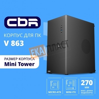 CBR Корпус mATX Minitower V863, без БП, 1*USB 3.0 Type C, 1*USB 3.0, 1*USB 2.0, HD Audio+Mic, Black [PCC-MATX-V863-WPSU] в г. Самара