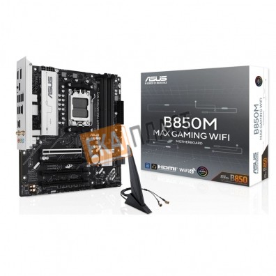 ASUS B850M MAX GAMING WIFI (Socket AM5, mATX, 4xDDR5(256GB), DP/HDMI, 1xPCIe 5.0x16/1xPCIe 4.0, 1xLAN(5GbE), Wi-Fi 6, 4xSATA 6Gb/s, 2xM.2, 2xType-C, 3xUSB 3.2, 2xUSB 2.0) в г. Советский