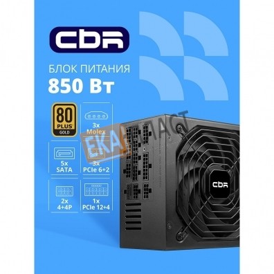 Блок питания CBR ATX 850W 80+ Gold, Full Modular, DC-DC, APFC, 24pin, 1*PCIE5.1(12+4pin), 2*8-pin(4+4P), 3*6+2pin, 5*SATA, 3*IDE, 14cm fan, 1.5м кабель питания, черный [PSU-ATX850-14MG] BOX в г. Советский