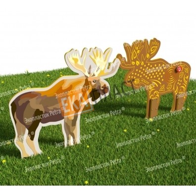 Двусторонний модуль с сенсорными элементами «Тактильный топиарий Лось» из экопластика Petra ® и нержавеющей стали в г. Советский