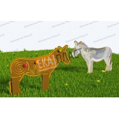 Двусторонний модуль с сенсорными элементами «Тактильный топиарий Осёл» из экопластика Petra ® и нержавеющей стали в г. Советский