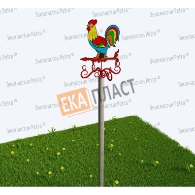 Флюгер «Красочный петушок малый» под пластиковой бронёй с опорами из нержавеющей стали в г. Советский