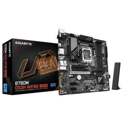 Материнская плата Gigabyte B760M DS3H WIFI6E GEN5 B760 Socket-1700 4xDDR5, 4xSATA3, RAID, 2xM.2, 1xPCI-E16x, 3xUSB3.2, 1xUSB3.2 Type C, D-Sub, 2xDP, HDMI, 2.5Glan, mATX в г. Советский