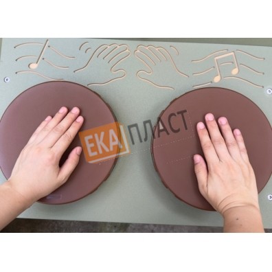 На бонго играют, постукивая пальцами, ладонями или руками по верхней мембране барабана — так создаётся ритм. Бонго всегда идут парой, поскольку каждый из барабанов издаёт немного разный тон. Если стучать по краю или по центру барабанов, звуки тоже будут различаться. Дети могут использовать бонго, чтобы сочинять собственные ритмы, сопровождать песню или музыкальное произведение. Также инструмент может применять педагог, когда дети поют или декламируют стихи и рифмованные тексты. Бонго от Masterkidz изготовлены из атмосферостойких материалов — их можно использовать как в помещении, так и на улице. Конструкция, удерживающая барабаны, крепится к любой STEM‑стене и позволяет установить инструмент на удобной для ребёнка любого возраста высоте. Особенности - Набор из 2 барабанов бонго. - Каждый барабан издаёт свою ноту. - Конструкция крепится к любой STEM‑стене. - Конструкция наклонена для удобства игры. - Изготовлено из атмосферостойкого материала. - Можно использовать и даже оставлять на улице без риска повреждения. - Размеры конструкции: ширина 600 мм, высота 364 мм. - Диаметр барабана: 205 мм.